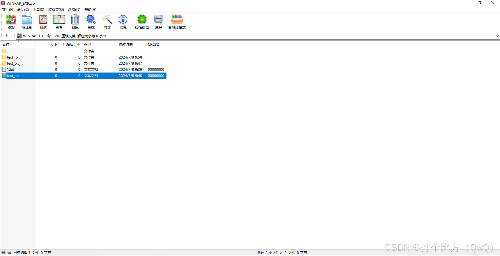此时就会发现,winrar同样将test_.txt文件夹中的内容也解压下来了。