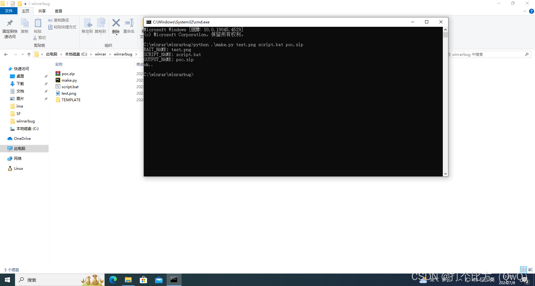 然后在该目录下,打开终端执行命令python .\make.py test.png script.bat poc.zip