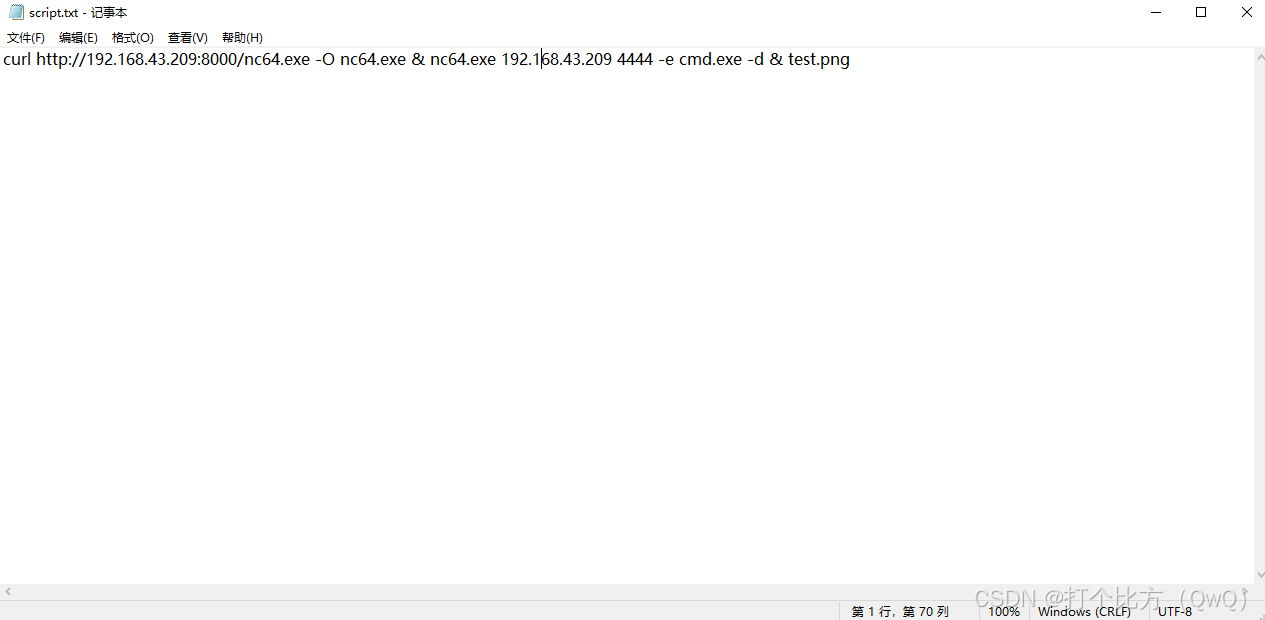 打开一个win10虚拟机作为靶机,制作一个脚本文件: