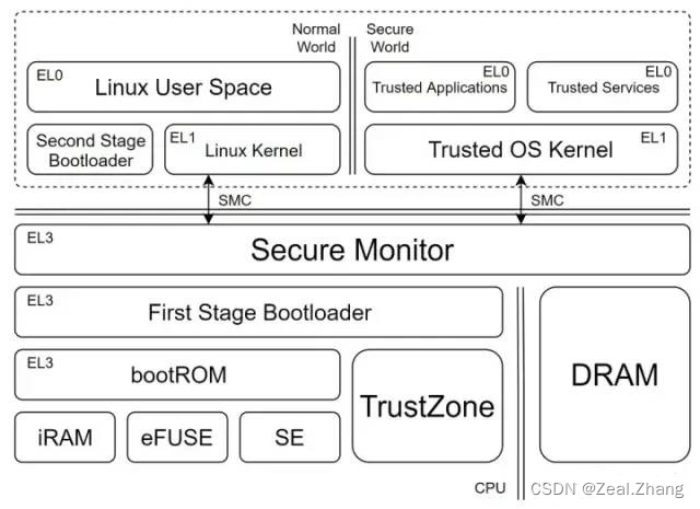 CPU在通电之后,执行的第一条程序就在BootROM,用于初始化Secure Boot安全机制,加载Secure Boot Key密钥,从 存储介质中加载并验证 First Stage Bootloader(FSBL);最后跳转进 FSBL 中。