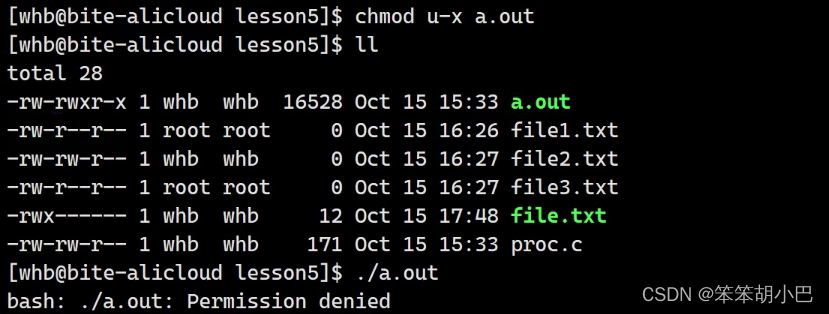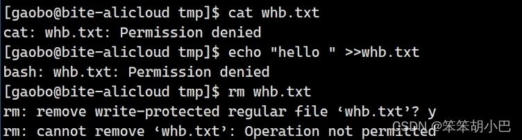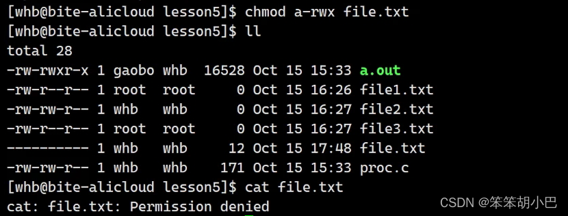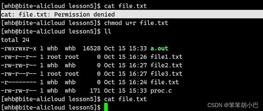 我们再切换为whb用户,此时我们对file.txt文件删除所有权限