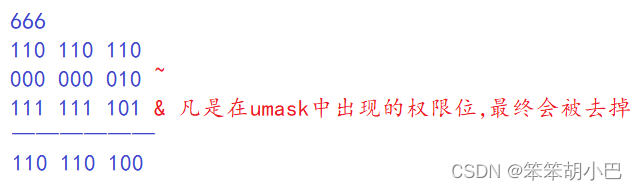 通过公式:mask & ~umask即可求出实际创建的出来的文件权限