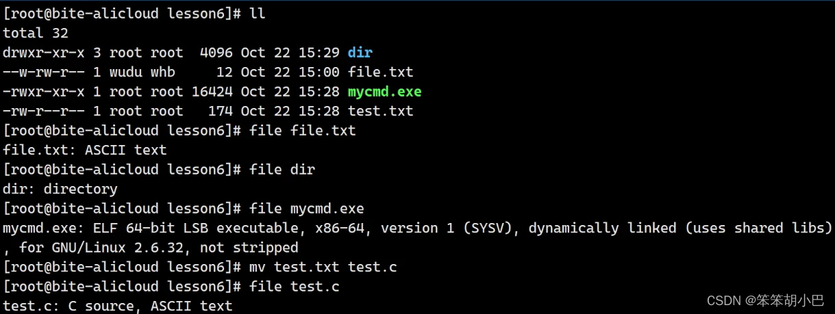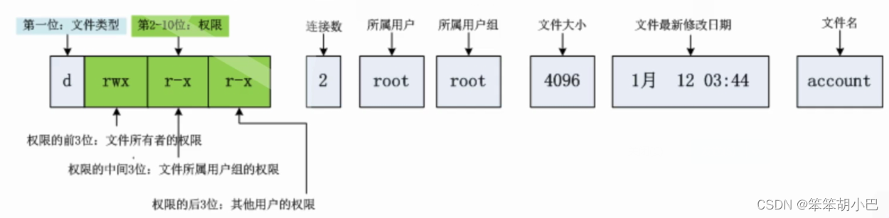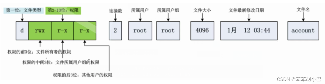 第一个字符,表示文件类型。在Windows下,我们同样也具有文件类型,通常是通过后缀名标识,文件类型用来判定文件属于哪一个类别,可以用哪些软件操作。但是Linux的文件类型不通过后缀区分(不代表Linux不用后缀)