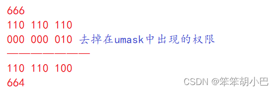 解释:定制一个文件被创建的时候的默认权限,从起始权限中去掉(不是减法)在umask中出现的权限!