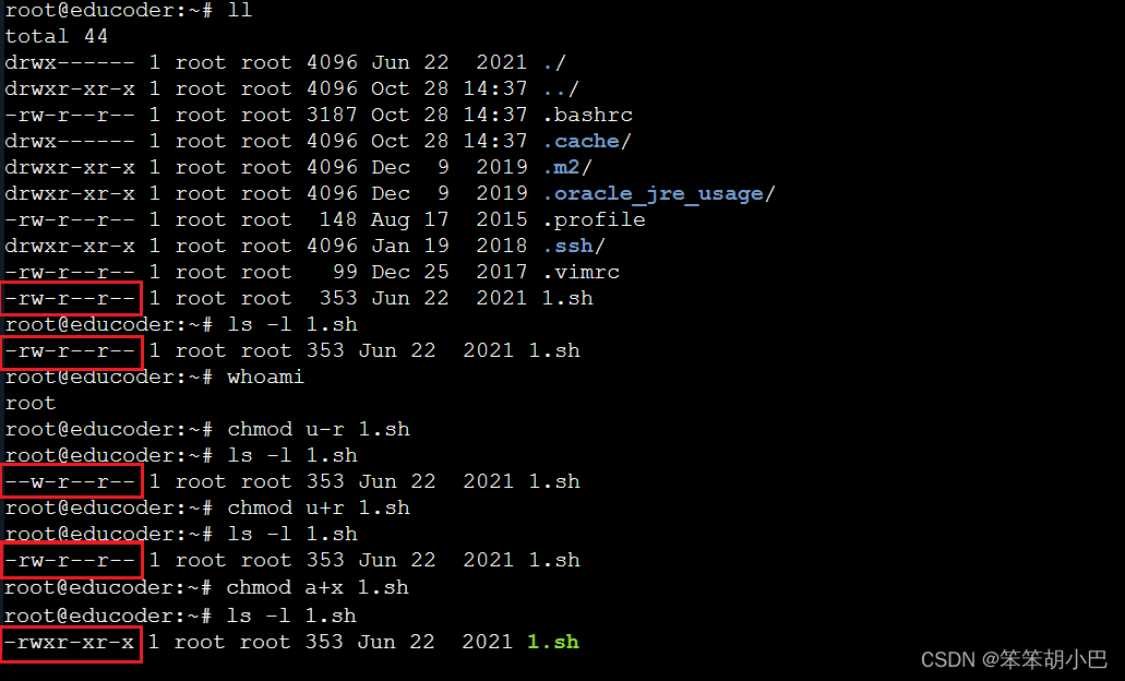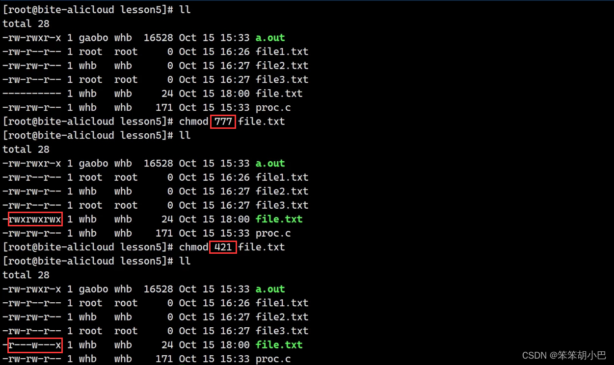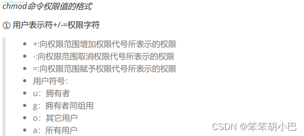 - 说明:只有文件的拥有者和root才可以改变文件的权限