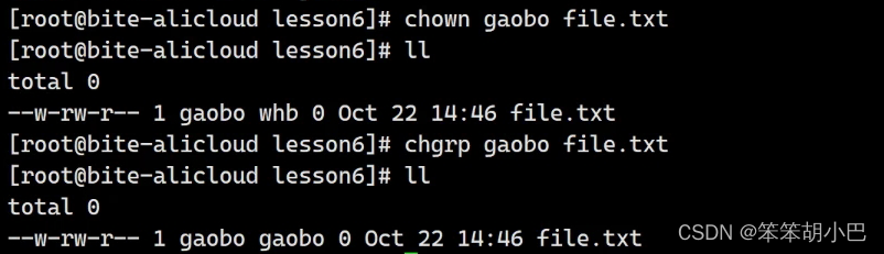 同时我们也可以切换成root身份,进行拥有者身份的变化。