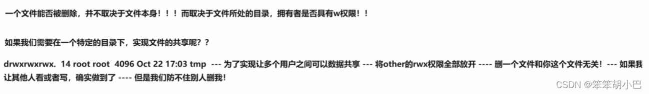 粘滞位:给目录中的other设置的一个权限位,具有x权限的意义,同时进一步对目录的权限进行特殊限定。