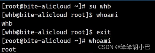 - root回退到普通用户:exit或者ctrl+d(logout)。