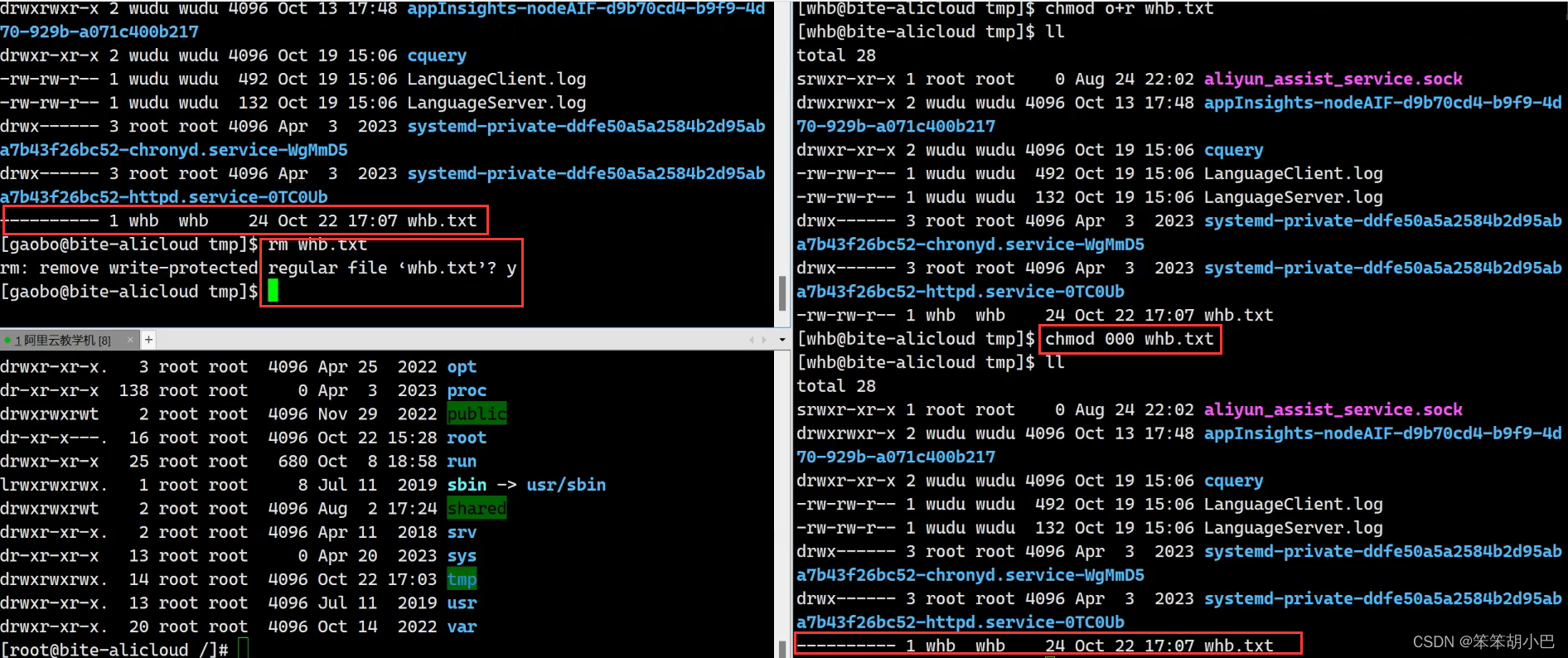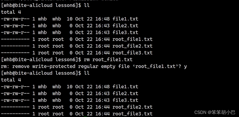 于是, 问题来了~~我们的root创建的文件,为什么能被whb这个普通用户删除呢?