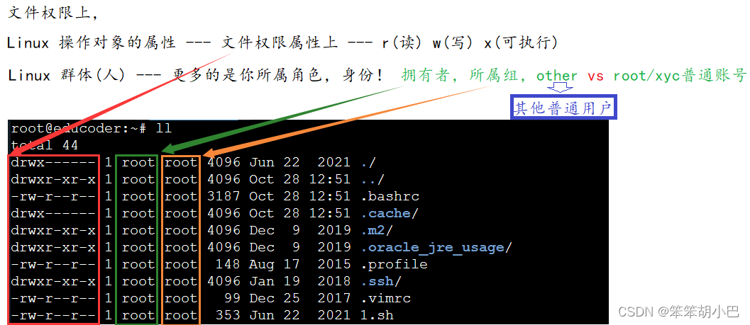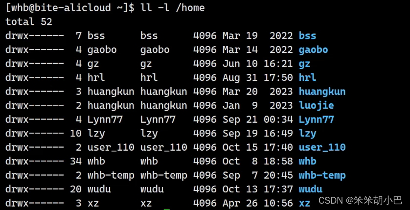 为了防止上面的情况出现,Linux对每个用户的家目录下都做出权限的管理,其他用户都无法进入家目录中写文件,也就避免了上面的删除问题。