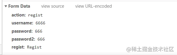 2.在这里,我们输入自己的姓名和密码,点击注册按钮。此时输入的这三个数据,我们可以看做成是一个表单的数据,这些数据会提交到服务器上: