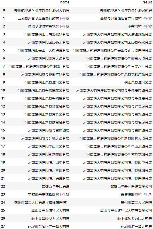可以看到准确率相对前面自写的编辑距离算法有了大幅度提升,但个别名称匹配结果依然不佳。
