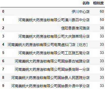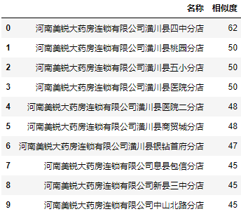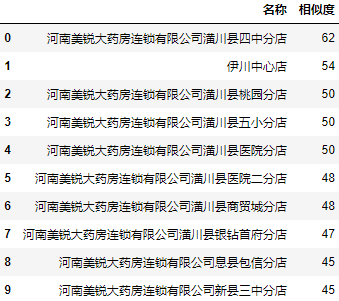 a = pd.DataFrame(a, columns=["名称", "相似度"])