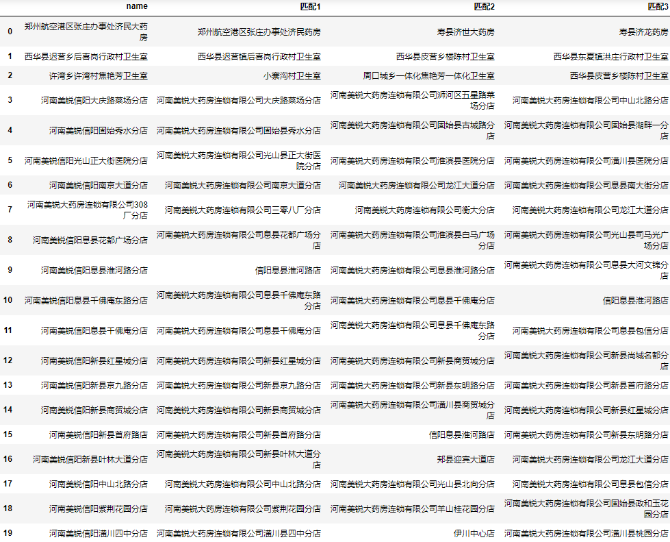 再对被查找的名称作相同的处理,即可进行相似度批量匹配: