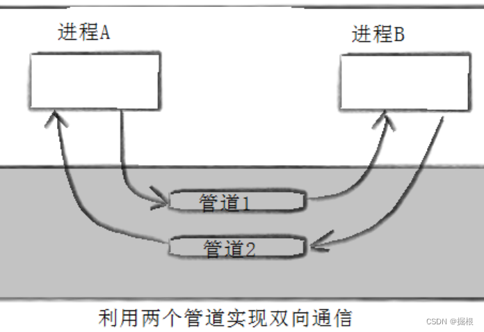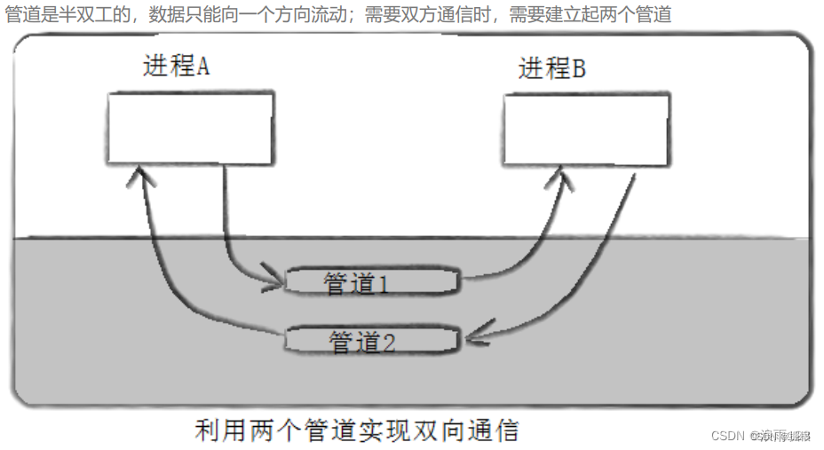 管道是半双工的,数据只能向一个方向流动,需要双方通信时,需要建立起两个管道。