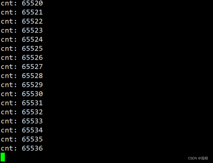 其实这个时候 写端在阻塞,这是因为我们写入的对象,也就是 管道文件 被写满了!从计数器我们可以看出一个管道文件的大小为 65536 个字节(ubuntu20.04)!也就是 64KB 大小! 注意:管道文件的大小依据平台的不同也各不相同。