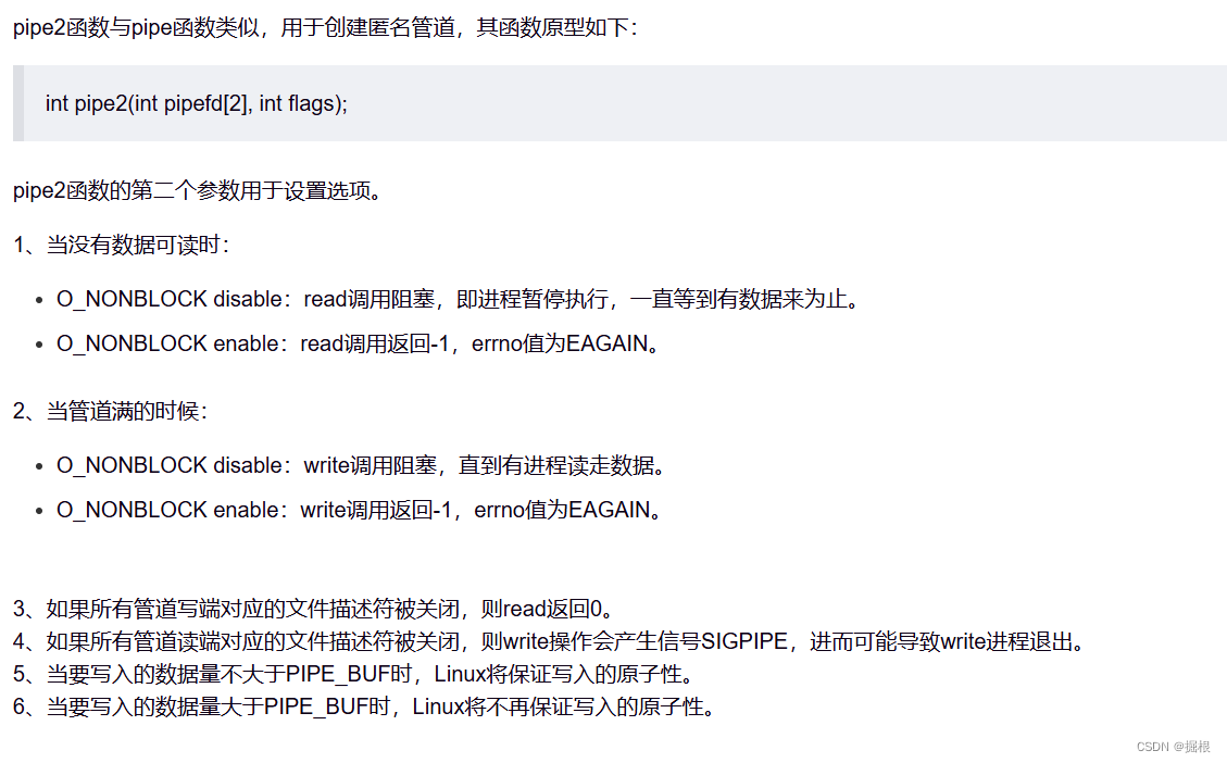 #include int pipe(int fd[2]); //功能:创建一个无名管道 注意:该函数的参数是输出型参数,在传参fd时要先创建fd,也就是事先声明 int fd[2];