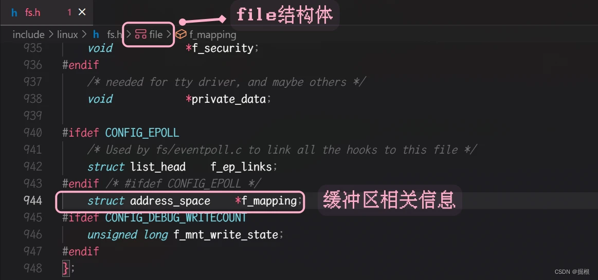 而这个 files结构体中, 直接或间接描述了文件的所有属性, 以及 此文件的缓冲区相关信息: