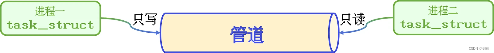 这是管道的特点, Linux的管道也是遵循这个特点的, 也就是说, 两个进程间使用管道通信时, 其中一个进程若以只写方式打开管道, 那么另一个进程就只能以只读方式打开文件.