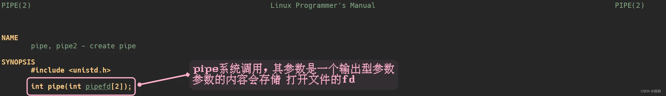 pipe系统调用的作用是, 打开一个管道文件. 其参数是一个 输出型参数