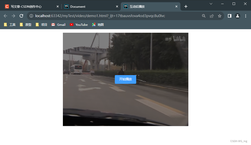 进入页面后发现不能自动播放,这时显示开始播放按钮,用户点击后开始播放。