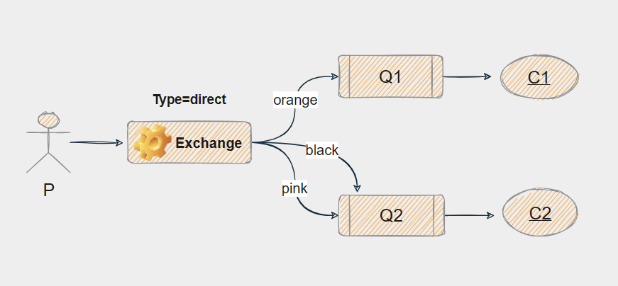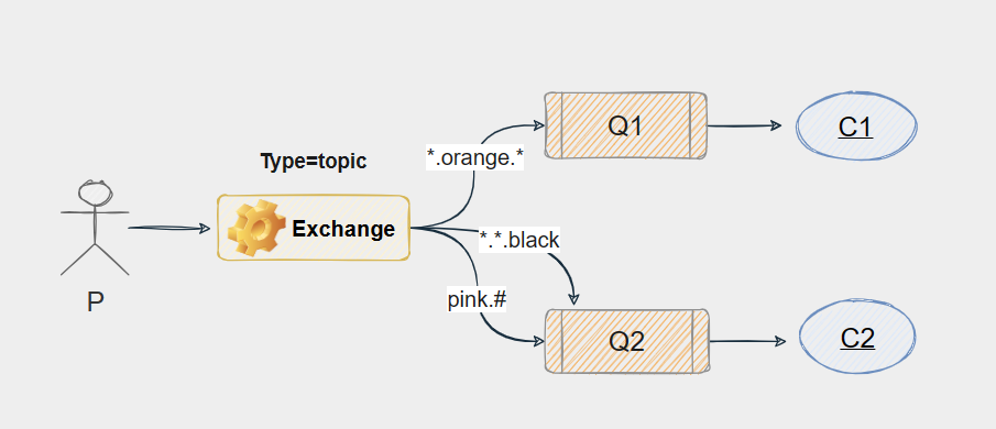 - 如果想让Q1和Q2都接收到P发出的信息,那么路由键为 xx.orange.black 或 pink.orange.xx