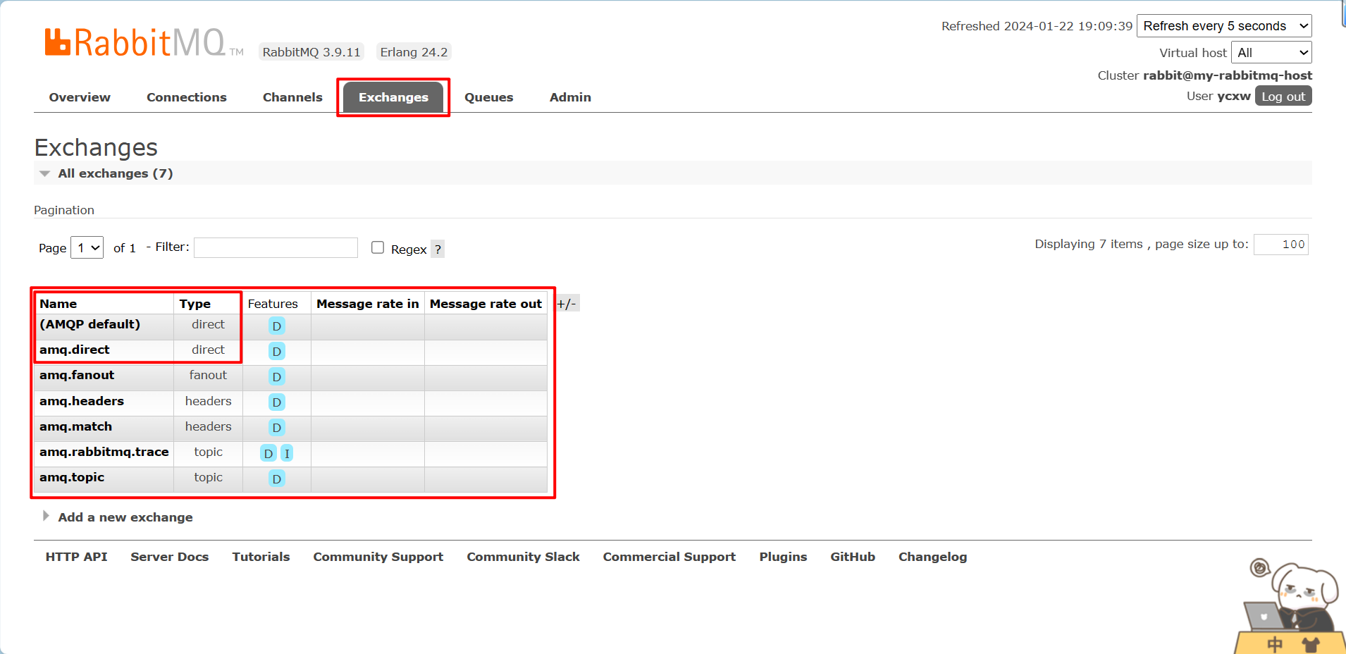 因此,当携带着名为”hello”的路由键的消息被发送到默认交换机的时候,此消息会被默认交换机路由至名为”hello”的队列中类似amq.*的名称的交换机:
