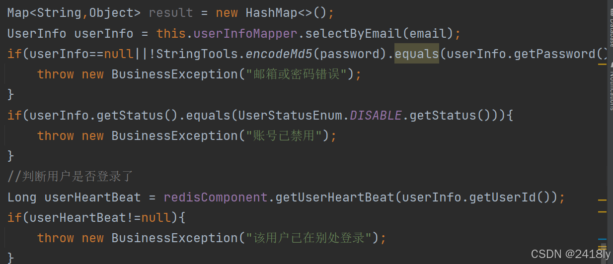 在登陆中我们先判断用户数据是否有误,如密码错误或邮箱不存在等