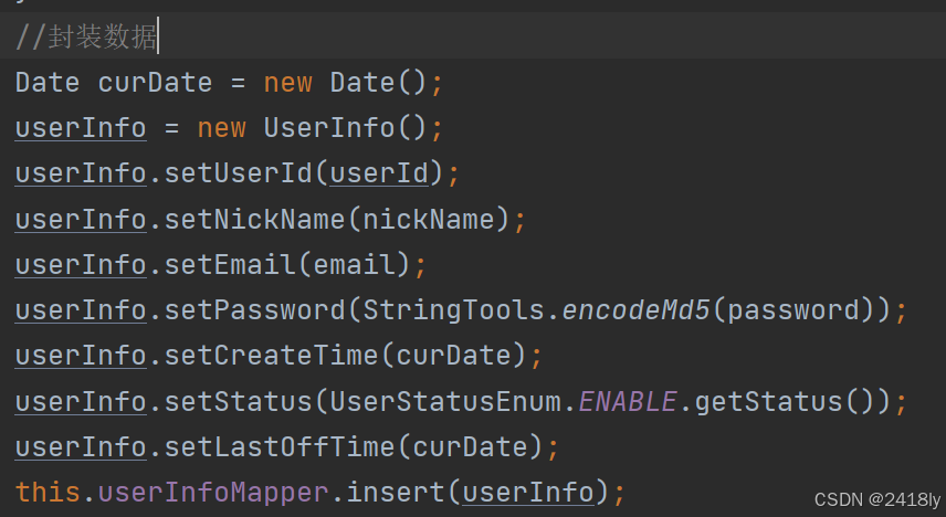 我们在封装如用户名、邮箱等数据到数据库就可以了