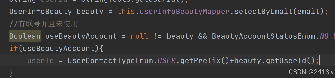 我们拥有联号注册的功能,就是我们可以通过联号添加好友,所以我们判断是否有联号并且未使用,有就将该用户的userid设为联号的id