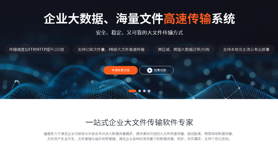 镭速(私有化部署方案,也可接入公有云,企业、社会组织用户可申请免费试用)的优势在于其高性能传输能力,基于自研的Raysync高速传输协议,能够满足PB级别大文件和海量小文件的极速传输需求。此外,系统采用国际顶尖的金融级AES-256加密技术,支持SSL加密传输,确保数据传输的安全性 。