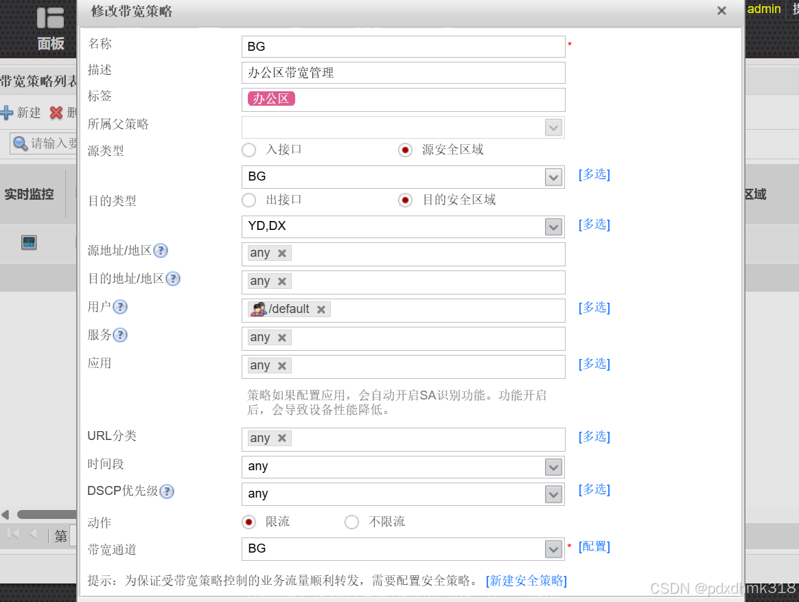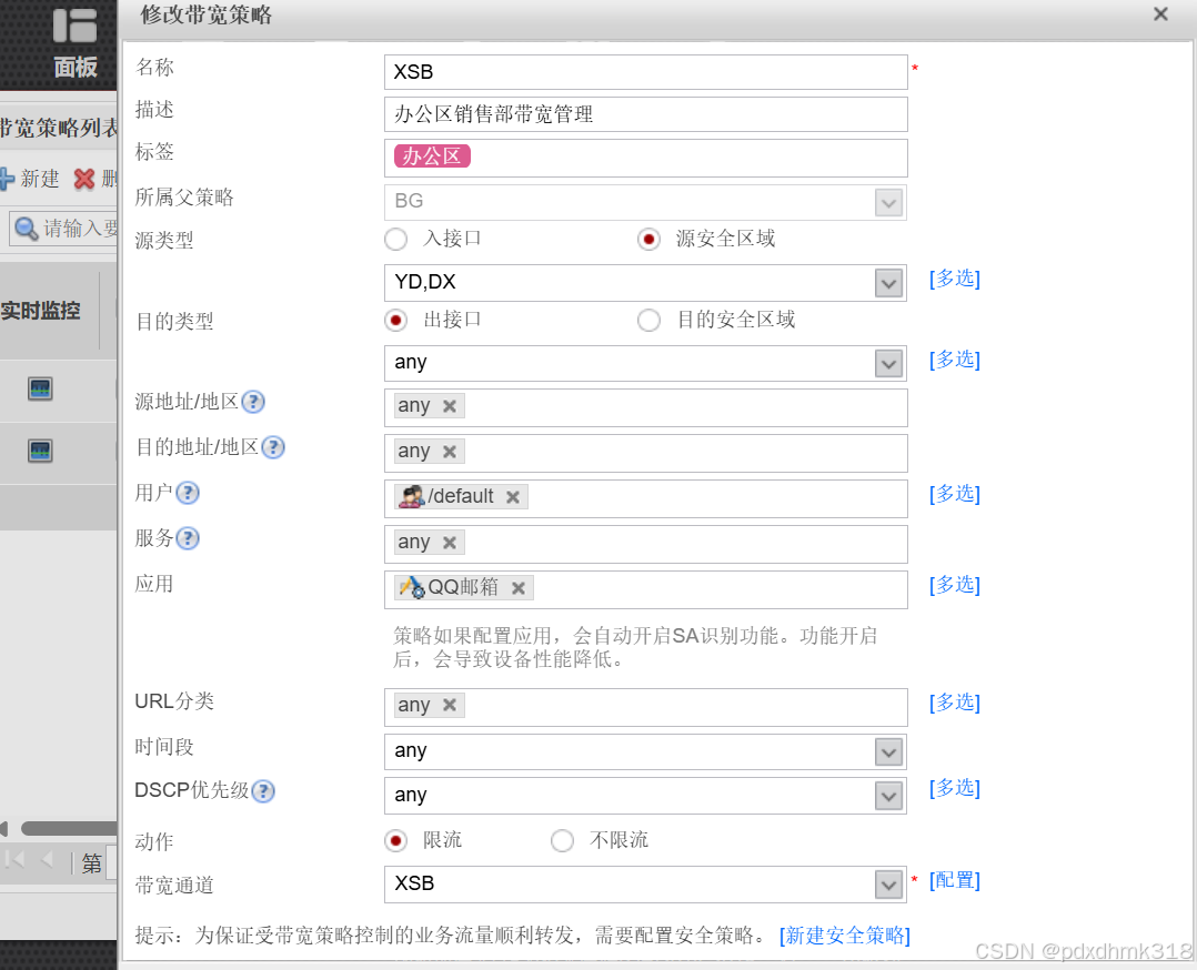 2、做带宽策略,办公区不超过100M,销售部不超过60M,销售部每个用户不超过6M