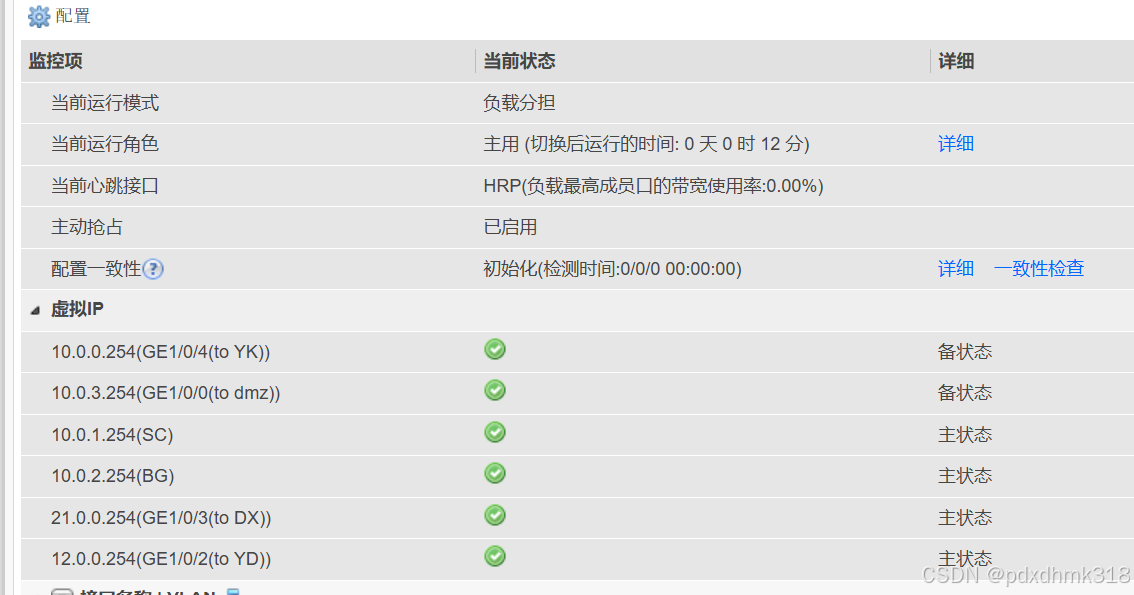 12,对现有网络进行改造升级,将当个防火墙组网改成双机热备的组网形式,做负载分担模式,游客区和DMZ区走FW3,生产区和办公区的流量走FW1