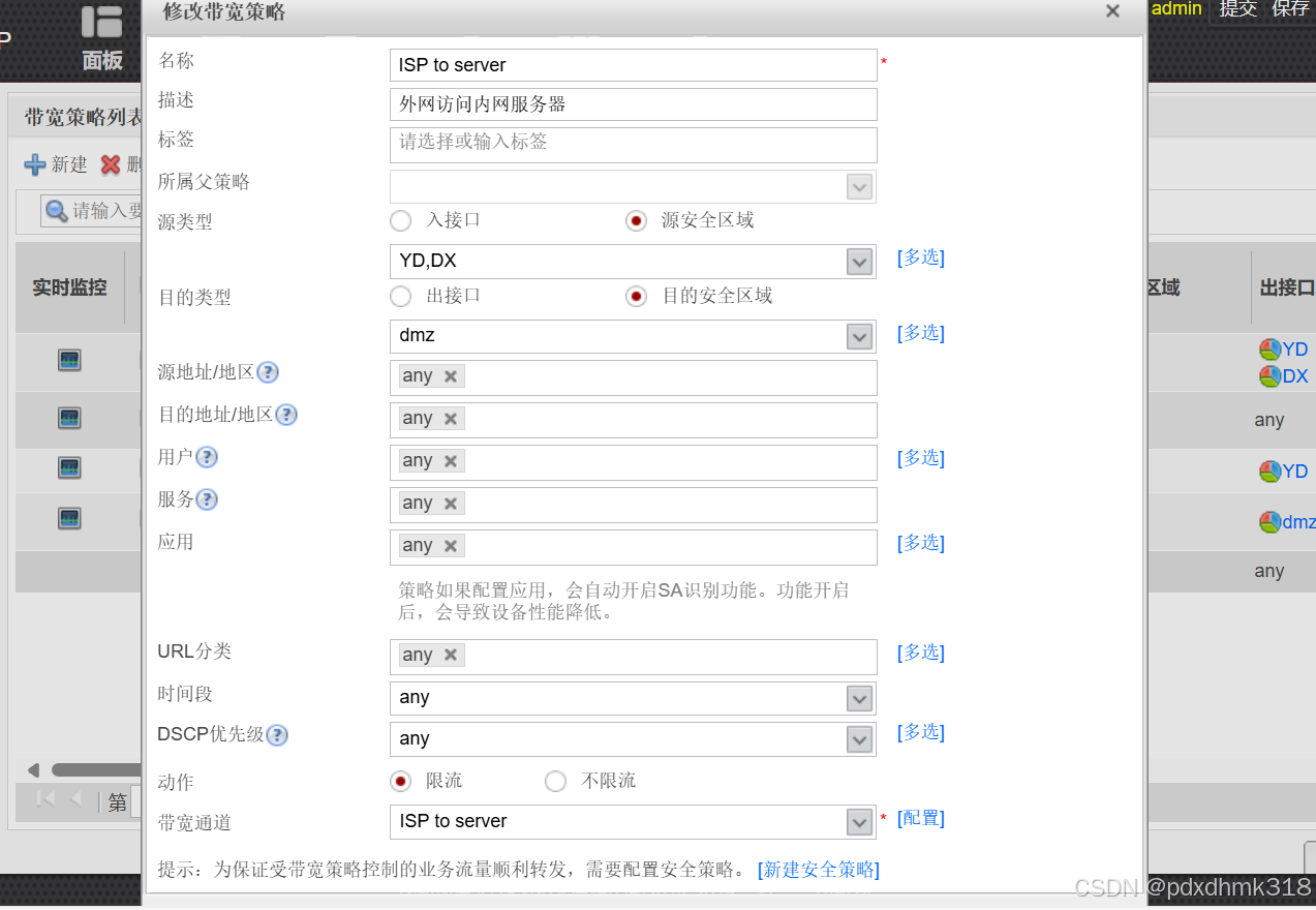 16,外网访问内网服务器,下行流量不超过40M,DMZ中的每台服务器限制对外提供的最大下行带宽不超过20M。