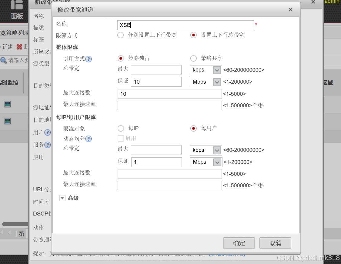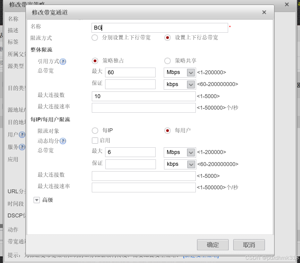 13,办公区上网用户限制流量不超过100M,其中销售部人员在其基础上限制流量不超过60M,且销售部一共10人,每人限制流量不超过6M