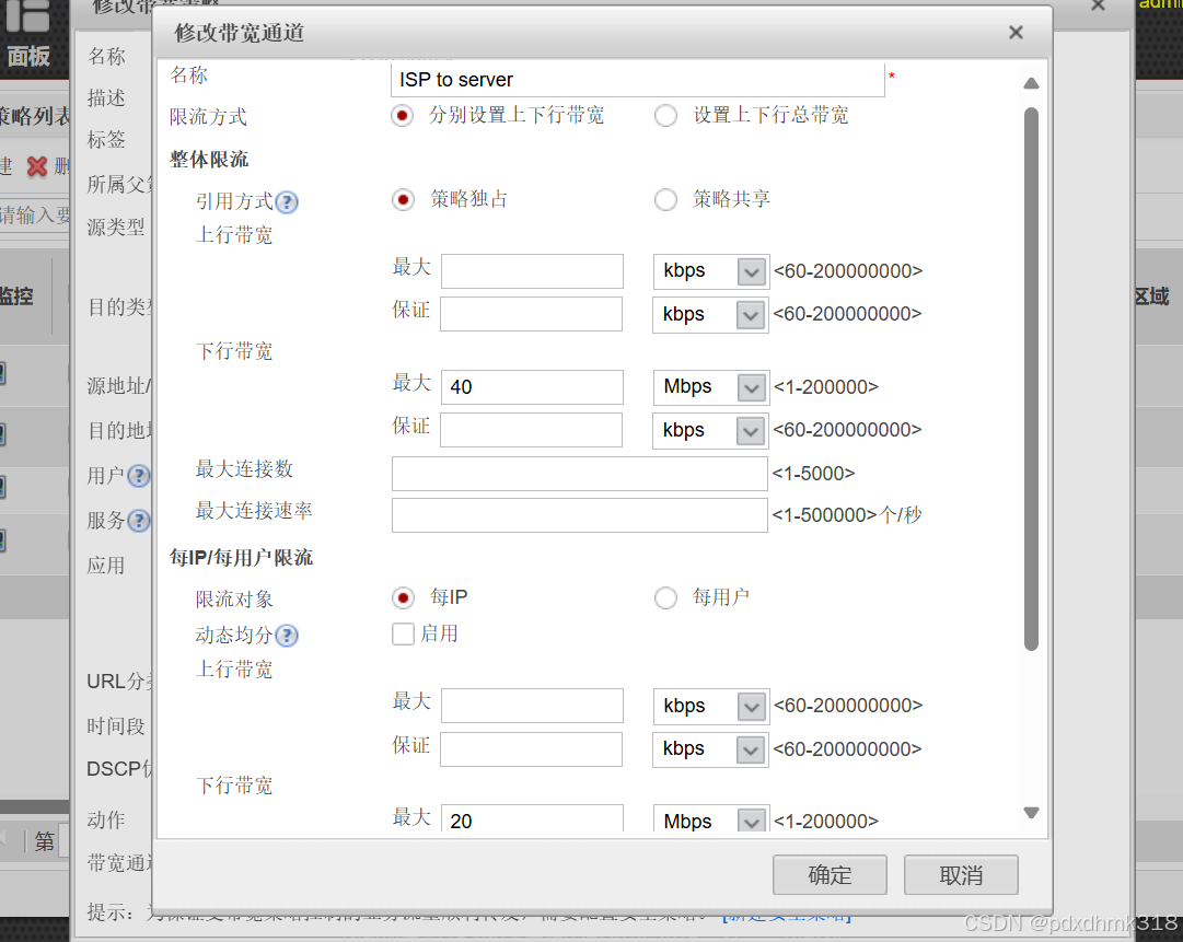 5、外网到内网下行流量不超过40M,DMZ下行带宽不超过20M