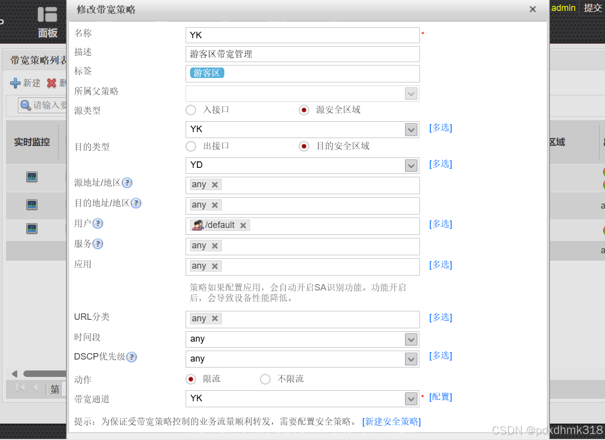 15,移动链路采用的是100M的带宽,要求游客区用户仅能占用50M,并且基于在线地址进行动态均分