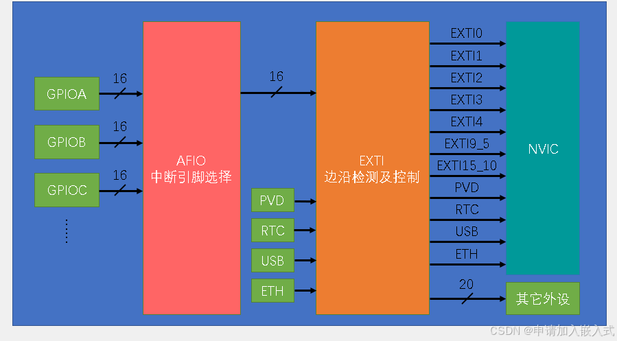 这个函数可以配置AFIO的数据选择器,来选择我们想要的中断引脚