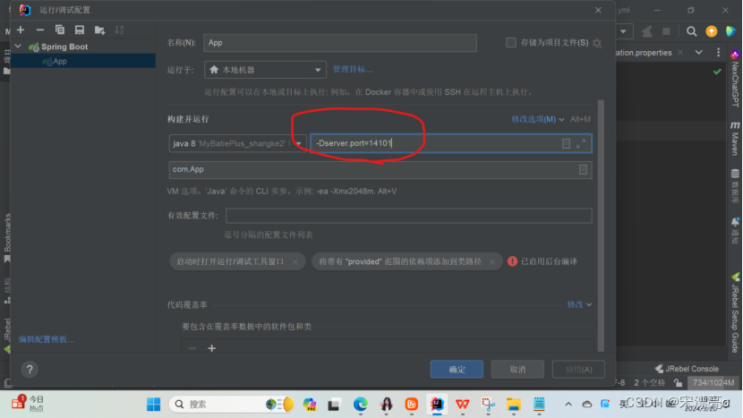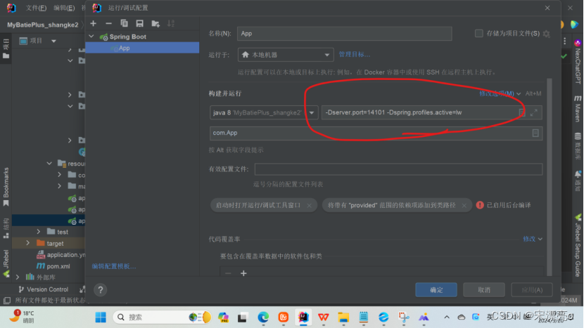 5.在app运行点击下面(6) 优先于(1) (2) (3) (4) (5)配置文件