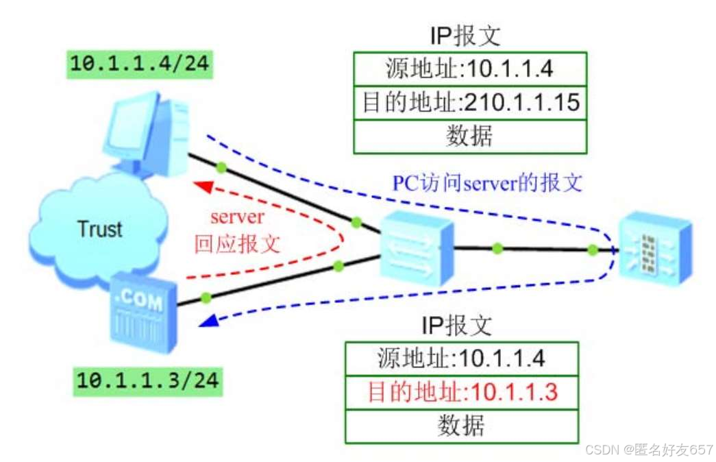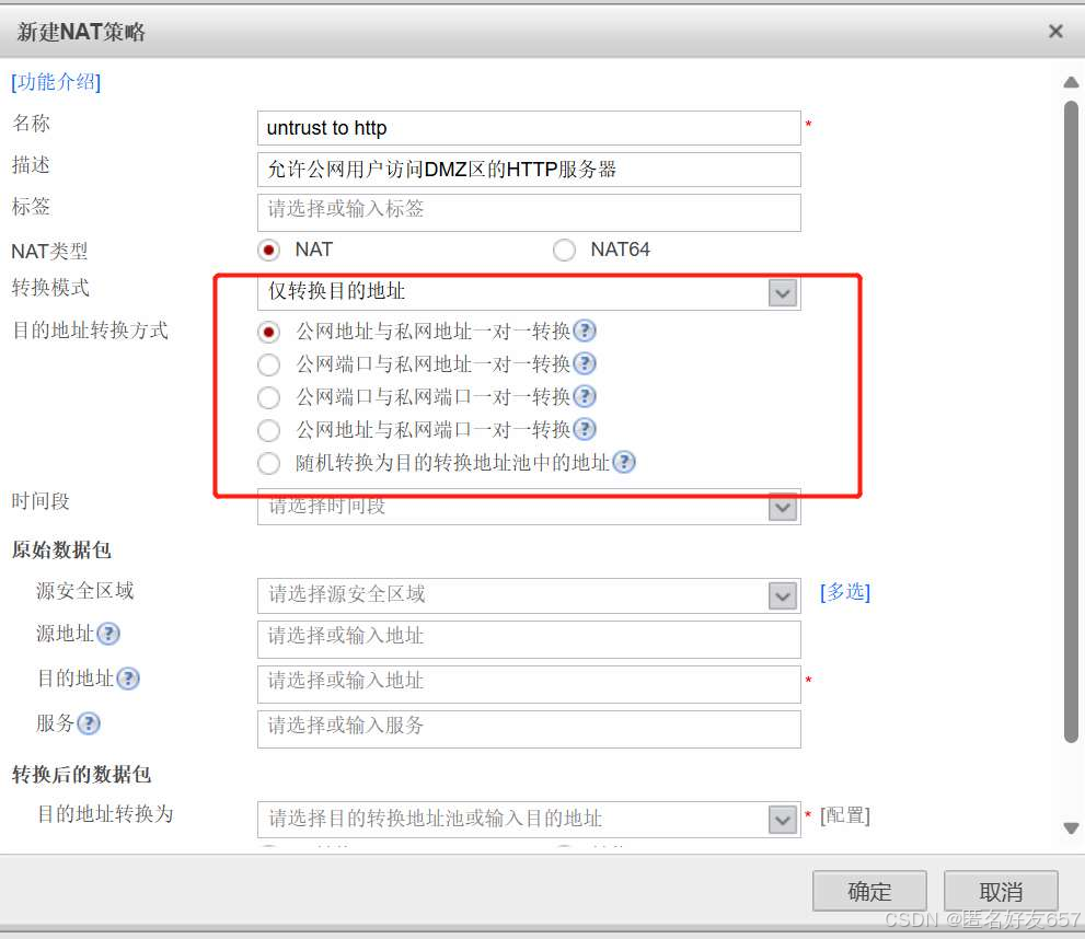 注意:源NAT的执行在安全策略之后,目标NAT 的执行在安全策略之前;