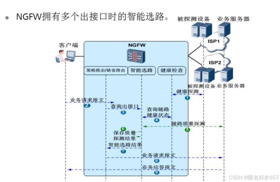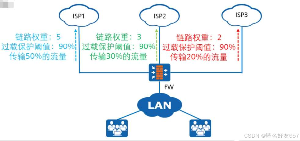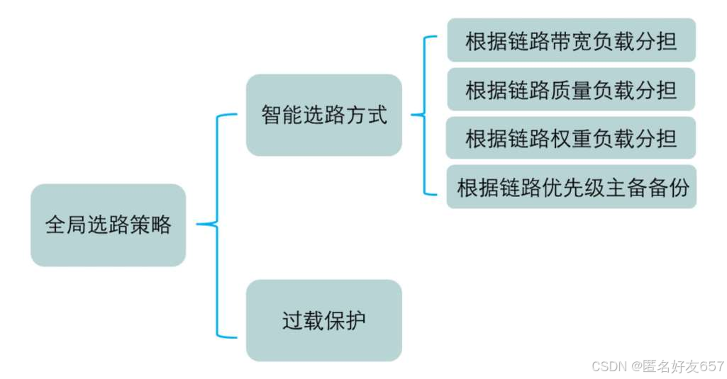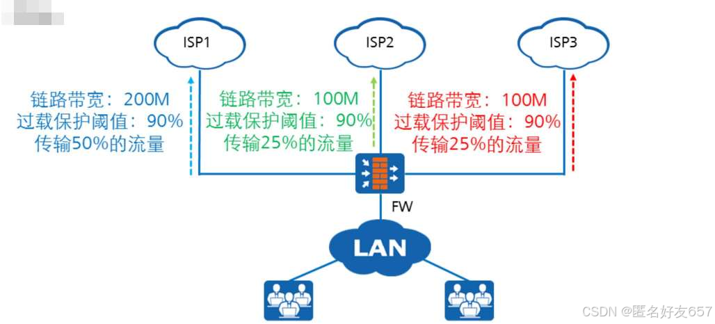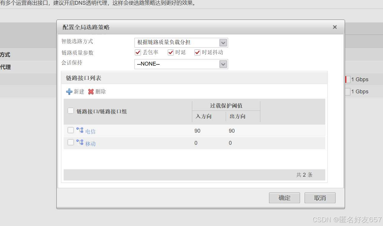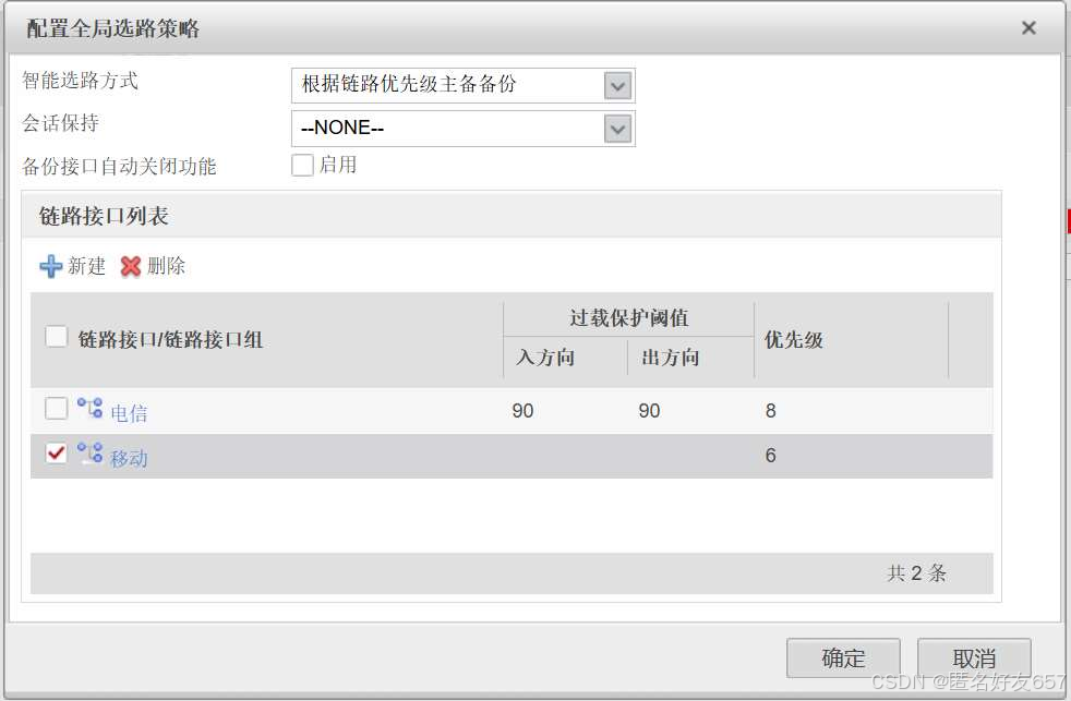 如果一条来南路超过了过载保护阈值,则该链路不参加智能选路(如果已经创建了会话表的流量,则将依然走该链路。)将在剩下的来南路中继续继续进行智能选路。