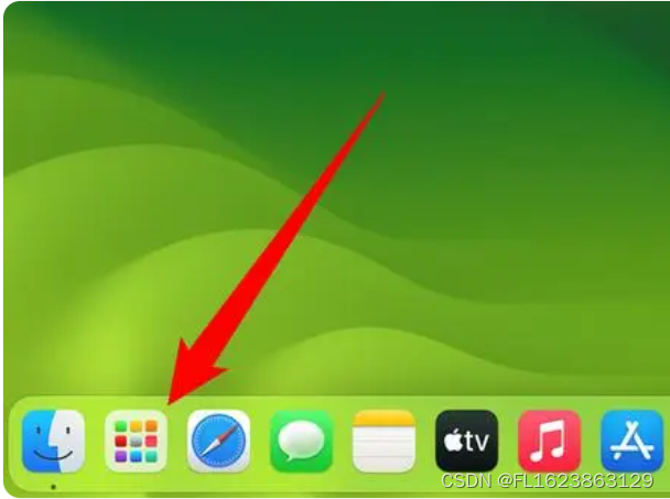你也可以从启动台快速打开终端。单击看起来像由彩色正方形组成的3x3网格的小图标。
