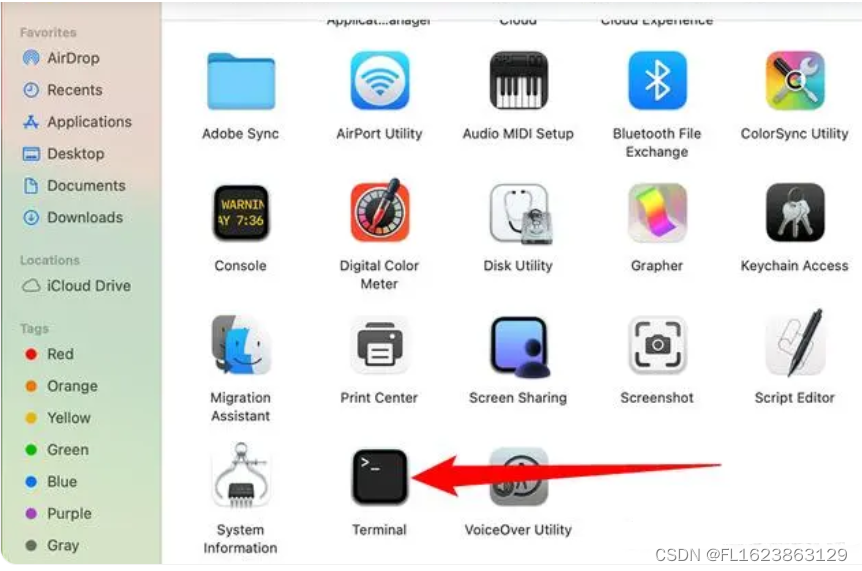 如果你希望从访达中的程序图标启动终端,通常会在应用程序中的实用程序文件夹中找到它。这是其在新安装的macOS上的默认位置。