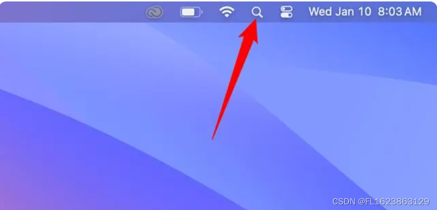 也许打开终端最简单、最快的方法是通过聚焦搜索。要启动聚焦搜索,请单击菜单栏中的小放大镜图标(或按Command+Space)。