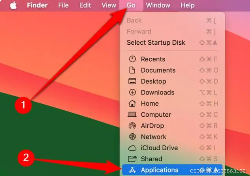 要从应用程序文件夹打开终端,请单击桌面以使访达成为焦点。在菜单栏中,单击转到并选择应用程序。
