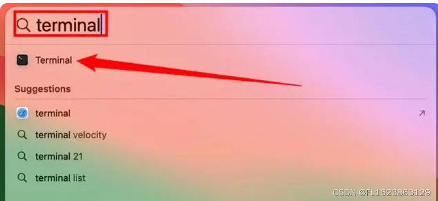 当聚焦搜索栏出现在屏幕上时,键入终端并单击回车。或者,你可以单击出现的终端图标。