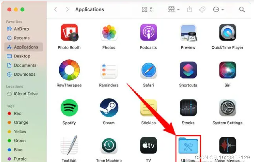 你的“应用程序”文件夹将打开。滚动,直到找到实用程序文件夹。双击实用程序文件夹以打开它。