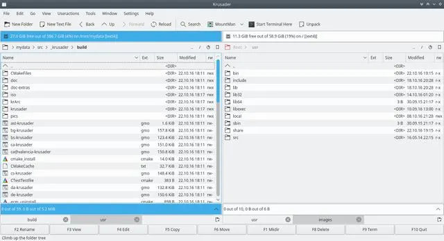 Krusader 是一个功能齐全的文件管理器,特别适合需要在不同目录之间频繁操作的用户。