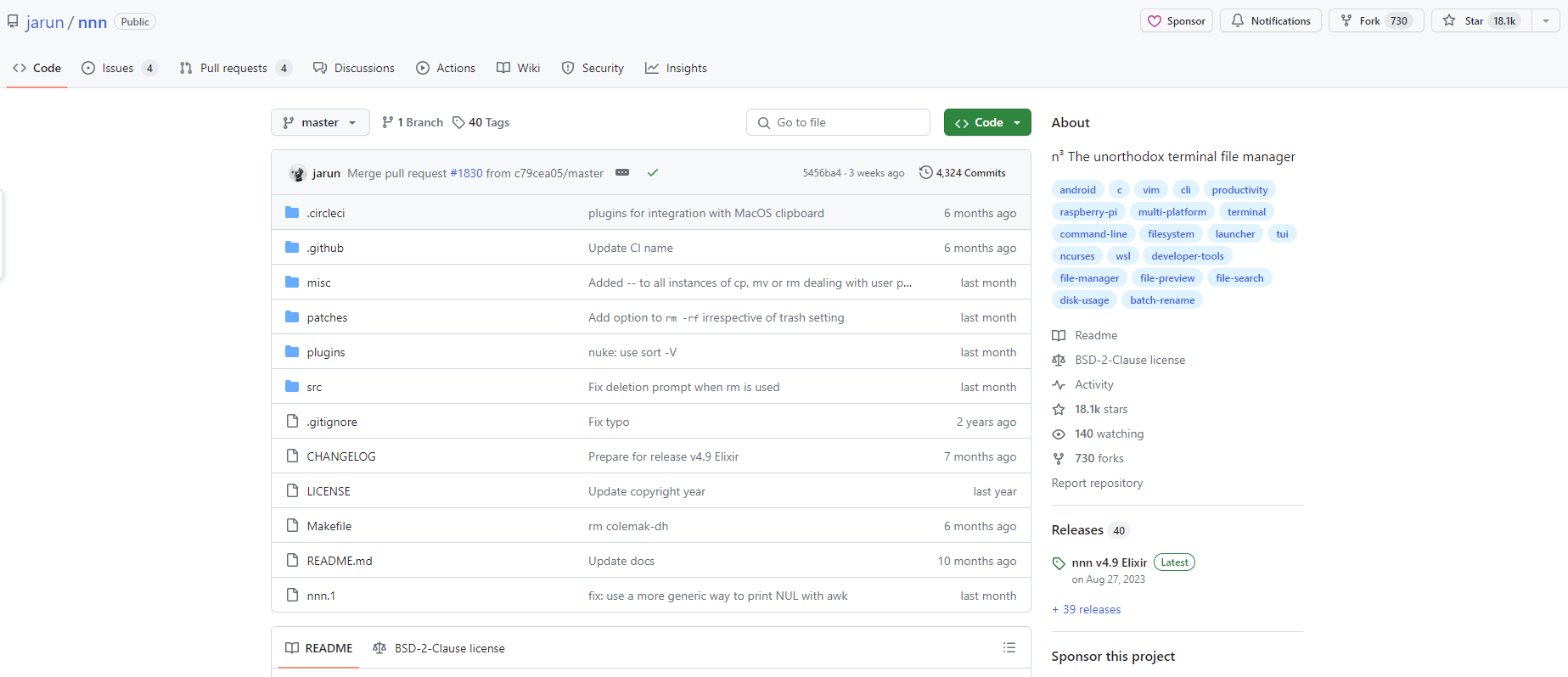 nnn 是一款简单但功能强大的文件管理器,特别适合喜欢在终端中快速操作文件的用户。