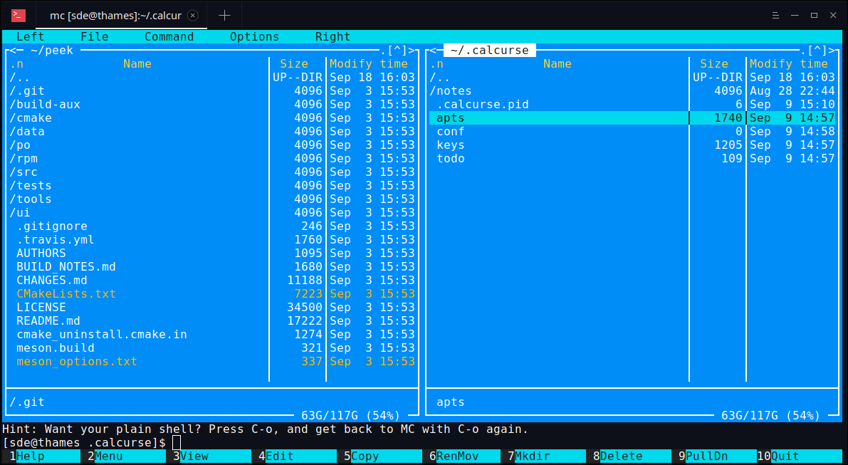 Midnight Commander 是一个经典的文本模式文件管理器,适用于那些喜欢在终端中工作的用户。它提供了双面板界面、快捷键操作和丰富的功能,使用户能够快速而高效地管理文件。